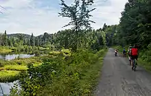 The Parc Linéaire Le P'tit Train du Nord is a multiuse recreational rail trail located in Quebec, Canada. It runs through the Rivière du Nord valley.[1] It originally was a railway line operated by Canadian Pacific Railway which operated it at a continuous financial loss since its construction in the 1890s. During the 1990s, it was dismantled to make way for a recreational multi-use trail except for the portion between Montréal and Saint-Jérôme which is still in service as the Saint-Jérôme line. Prior to decommissioning, passenger traffic on this line was so scarce that it gave way to the humorous and intricately philosophical and poetic song by Felix Leclerc, "Le train du nord".