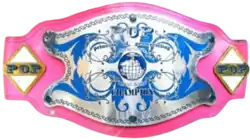 The Princess of Pro-Wrestling (POP) Championship is a Japanese women's professional wrestling championship owned by the Pure-J promotion. The title was created in the JDStar promotion on June 24, 2006, when Fuka defeated Natsuki☆Head in the finals of a tournament to become the inaugural champion.[1] On June 17, 2007, JWP Joshi Puroresu's reigning JWP Junior Champion Arisa Nakajima won the title on JDStar's second to last event.[3] Though the two titles were not formally unified, they were defended together from this point onward.[4] The titles remained together in JWP for nearly a decade, before it was announced on February 8, 2017 that the promotion was shutting down. As a result, the two titles were once again be separated, with the JWP title remaining with the promotion's production company, while the POP title moved on to Command Bolshoi's follow-up promotion to JWP,[5][6] later named Pure-J.[7][8] Between the transition from JWP to Pure-J, the former JWP roster held events under the name Dream Joshi Puroresu, where the POP title was also defended.[9]