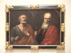 Díez de Aux painted for the chapels of St. Marco and Santiago, and one in the Cathedral de la Seu at Zaragoza, representing the Battle of Clavijo (1696). His other paintings included the Martyr of Santiago and Saints Peter and Paul which is now at the Zaragoza Museum.