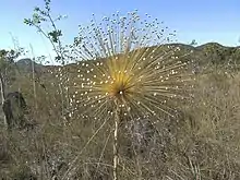 Paepalanthus bromelioides is a species in the flowering plant family Eriocaulaceae. This family is placed in the Poales, close to the Bromeliaceae, whose morphology this genus shares. Paepalanthus bromelioides is native to Cerrado. There is some speculation that the occasional insects trapped in the urn of this plant are evidence of its being a carnivorous plant or protocarnivorous, possible deriving nutrients from termite mounds that termites frequently make in the plants' roots.[1]