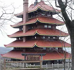 The Pagoda is a novelty building, built atop the south end of Mount Penn overlooking Reading, Pennsylvania, United States. It has been a symbol of the city for more than a century.