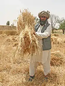 Rural social organization in Pakistan is marked by kinship and exchange relations.[2] Socioeconomic status among rural Pakistani villagers is often based upon the ownership of agricultural land, which also may provide social prestige in village cultures.[3] The majority of rural Pakistani inhabitants livelihoods is based upon the rearing of livestock, which also comprises a significant part of Pakistan's gross domestic product.[4] Some livestock raised by rural Pakistanis include cattle and goats.[5]