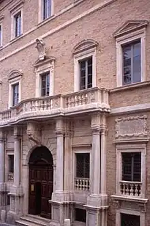 The Palazzo Compagnoni Marefoschi is a Baroque-style aristocratic urban palace located on Via don Minzoni 11 in the center Macerata, region of the Marche, Italy. It rises diagonal to the Palazzo Buonaccorsi.