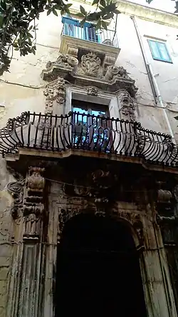 This palace was built by Agostino Fraccia, baron of Favarotta and Furni since 1697,[1] in order to have a mansion fitting to the new social position he had acquired from his noble family;[2] it can certainly be considered one of the most beautiful civil buildings built in the 18th century in Alcamo.