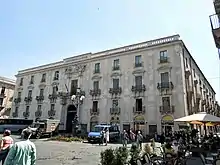 The Palazzo San Giuliano is a monumental palace located in Piazza Universitaria, in the center of the city of Catania, Sicily, southern Italy. Once a private home of the San Giuliano branch of the House of Paternò, it has also served as hospital, bank, theater, and hotel. Presently it houses the administrative offices of the University of Catania, and stands across the piazza from the Palazzo dell'Università, which has the rector's offices, a library, and a small museum.