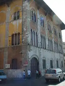 The Palazzo Vecchio de' Medici, also called the Palazzo della Prefettura is a Gothic revival-style palace located on Piazza Giuseppe Mazzini #7, in the city of Pisa, region of Tuscany, Italy.