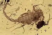 123. 1 2 3 Lourenço, W. R. (2016). "A preliminary synopsis on amber scorpions with special reference to Burmite species: an extraordinary development of our knowledge in only 20 years". ZooKeys (600): 75–87. Bibcode:2016ZooK..600...75L. doi:10.3897/zookeys.600.8913. PMC 4926682. PMID 27408601.