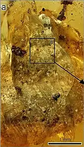 Burmese amber is fossil resin dating to the early Late Cretaceous Cenomanian age recovered from deposits in the Hukawng Valley of northern Myanmar. It is known for being one of the most diverse Cretaceous age amber paleobiotas, containing rich arthropod fossils, along with uncommon vertebrate fossils and even rare marine inclusions. A mostly complete list of all taxa described up until 2018 can be found in Ross 2018;[1] its supplement Ross 2019b covers most of 2019.[2]