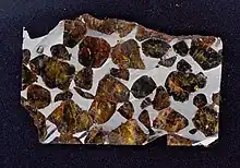 Pallasovka is a pallasite meteorite found in 1990 near the town of Pallasovka, Russia.