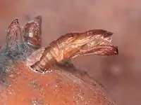 The larvae live as an inquiline in cynipid galls on various plant species, including Andricus kollari, Andricus conglomeratus, Andricus hungaricus, Andricus lucidus and Aphelonyx cerricola. They often consume the cynipid larva as well as gall tissue.