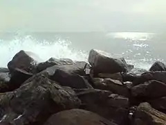 Panambur beach is beside the New Mangalore Sea Port. The rock wall forms the northern breakwater of the sea port entrance and protects vessels at anchorage from the weather and longshore drift. Walking on the breakwater rocks is forbidden.[4] The port has to abide by International Ship and Port Facility Security (ISPS) Code and keep the breakwater free of people.[5]
