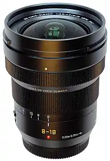 The Panasonic Leica DG Vario-Elmarit 8–18 mm f/2.8-f/4.0 lens is a digital compact ultra wide angle lens for Micro Four Thirds system cameras. It is a varifocal lens branded with the German label Leica, but manufactured by Panasonic in Japan.