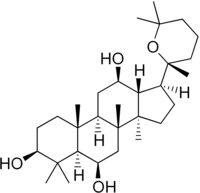 Panaxatriol is an organic compound that is an aglycone of ginsenosides, a group of steroid glycosides.[1] It is a dammarane-type tetracyclic triterpene sapogenin found in ginseng (Panax ginseng) and in notoginseng (Panax pseudoginseng). It is formed by the dehydration of protopanaxatriol.