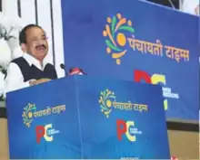 ![]() Vice President of India Shri M Venkaiah Naidu at a national award ceremony organized by Panchayati Times at Vigyan Bhawan, New Delhi in 2018. | |