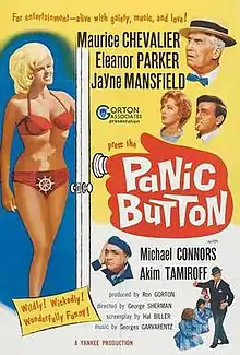 Panic Button is a 1964 low-budget Italian-produced comedy film starring, Maurice Chevalier, Eleanor Parker, Jayne Mansfield, and Mike Connors. Filmed in the summer of 1962, in Italy, and released nearly two years later, the film tells the story of how a washed-up actor (Chevalier) and a buxom unknown (Mansfield) are chosen to co-star in a television production of Romeo and Juliet. The picture is known for being one of several foreign films Mansfield was forced to make after her contract was dropped from 20th Century Fox in 1962.
