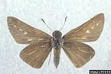 2. Opler, Paul A., Harry Pavulaan, Ray E. Stanford, Michael Pogue, coordinators (2006). "Ocola Skipper Panoquina ocola (W.H. Edwards, 1863) | Butterflies and Moths of North America". Big Sky Institute. Retrieved 2020-06-23.{{cite web}}: CS1 maint: multiple names: authors list (link)