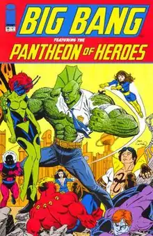 The Pantheon of Heroes (a.k.a. the Pantheon of Super Heroes) is a 30th-century superhero team based on the Legion of Super-Heroes (the cover for Pantheon's first story was drawn by former Legion artist, Dave Cockrum) and was introduced in Big Bang Comics. Pantheon of Heroes first appeared in Big Bang #12, #14 and #18 – the "TimeBomber Saga" guest-starring Erik Larsen's Savage Dragon. Mark Lewis, the man responsible for many Big Bang logos, designed a few of the earliest characters, and the Butterfly Queen that appeared slightly later.