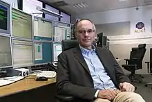 Until 31 December 2016, Giubellino was Spokesperson of the ALICE: A Large Ion Collider Experiment, an international collaboration of more than 1300 people from 163 scientific institutions from 40 countries.[3][4] He has carried several responsibility positions in the ALICE Collaboration since its creation in the early nineties, to be eventually elected Deputy Spokesperson from 2004 to 2010 and Spokesperson from 1 January 2011.[5] In 2011 at the international symposium on subnuclear physics held in Vatican City, he gave a talk The Little Bang in the Laboratory: Heavy Ions @ LHC with ALICE.[6] On 17 July 2013, he was elected for a second term as Spokesperson of ALICE.