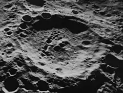 Papaleksi is an impact crater on the far side of the Moon. It lies along the northeastern outskirts of the large crater Mandel'shtam. About 20 km to the north-northeast of Papaleksi is the similar crater Spencer Jones.