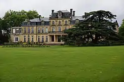 The estate was acquired at the end of the 19th century by ship-owner Émile Ravesies and his son-in-law, banker Piganneau. In 1869, they rebuilt the manor according to plans made by the architects Jules et Paul Lafargue. Three triple-bayed corps de logis, capped by a slate roof, face the park. In 1890, the owners entrusted the Orléanais landscape architect Le Breton with the design of the park,[3] which included connecting the Devèze river to a pond, constructing small bridges over the river, and installing a decorative stone gate.