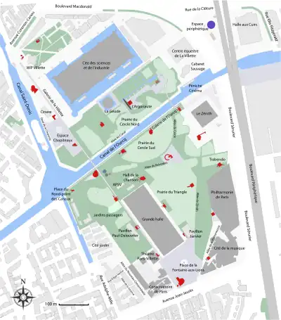 - ↑ “Parc de la Villette: Modern Park in Paris” Paris-Walking-Tours.com. Retrieved 2010-03-12.