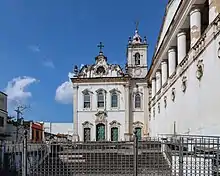 The Parish Church of Our Lady of Pilar (Portuguese: Igreja Matriz de Nossa Senhora do Pilar) is an 18th-century Roman Catholic church located in Salvador, Bahia, Brazil. It includes a cemetery, constructed in the Neoclassical parallel to the nave of the church. The interior of the church has an extensive set of azulejo tiles in the rococo style. The historian Carlos Ott dated them to the late 18th century, and stated that they appear to be the work of the Juncal workshop in Portugal. The stonework of the church is in lioz stone, imported from Lisbon at great expense. The art historian Germain Bazin describes the church as a "refinement of forms", due to its long, narrow nave and lack of corridors in the nave.[1][2][3][4][5]
