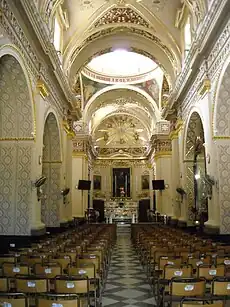 In 1899 a statue representing the Virgin Mary with baby Jesus presenting a rosary to Saint Dominic and Saint Catherine of Siena was presented to the church. It was made in Lecce, Italy under the supervision of Guzeppe Malicore. The church also has a number of paintings by Giuseppe Calì.