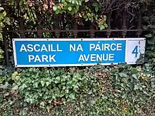 Park Avenue (Irish: Ascaill na Páirce) in the suburb of Sandymount, Dublin 4, Ireland is the name of a road joining Sydney Parade Avenue to Gilford Road. It is home to a number of cricket and rugby union grounds including Pembroke Cricket Club,[1] the Railway Union Sports Club[2] and Monkstown Rugby Club. Of architectural note is the Church of St John (Church of Ireland), noted for its French Bath stone's decay due to its proximity to the sea. The church is on an island at the junction of Park Avenue and St Johns Road, which continues east towards the sea at Sandymount Strand.