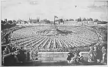 Before 1613, Parker's Piece was owned by Trinity College.[6] In that year, the college exchanged it with the town of Cambridge for Garrett Hostel Green,[6] a site east of the River Cam where the Wren Library of Trinity College now stands.[7] Parker's Piece takes its name from Edward Parker, a Trinity College cook who had leased the land from the college since 1587.[6]