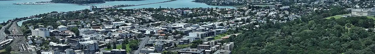 Parnell (Māori: Panēra)[3][4] is a suburb of Auckland, New Zealand. It is one of New Zealand's most affluent suburbs,[5] consistently ranked within the top three wealthiest,[6] and is often billed as Auckland's "oldest suburb" since it dates from the earliest days of the European settlement of Auckland in 1841. It is characterised by its mix of tree-lined streets with large estates; redeveloped industrial zones with Edwardian town houses and 1920s bay villas; and its hilly topography that allows for views of the port, the Waitematā Harbour, Rangitoto Island and the Auckland Domain. To its west lies the Auckland Domain, to the south Newmarket, and to the north the Ports of Auckland.