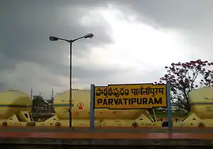 Parvatipuram railway station (station code:PVP), located in the Indian state of Andhra Pradesh, serves Parvathipuram in Parvathipuram district. It is one of the two railway stations in Parvathipuram.