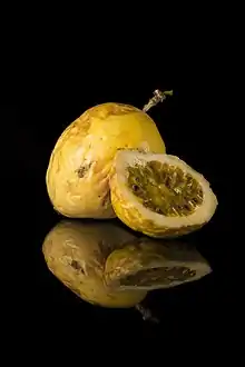 - ↑ Devi Ramaiya S, Bujang JS, Zakaria MH, King WS, Shaffiq Sahrir MA (2013). "Sugars, ascorbic acid, total phenolic content and total antioxidant activity in passion fruit (Passiflora) cultivars". J Sci Food Agric. 93 (5): 1198–1205. doi:10.1002/jsfa.5876. PMID 23027609.