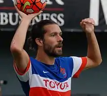 McMahon making a throw-in while playing for FC Cincinnati in 2016