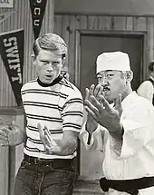 Morita's first movie roles were as a henchman in Thoroughly Modern Millie (1967) and a similar role in The Shakiest Gun in the West (1968), starring Don Knotts. Morita had other notable recurring television roles on Sanford and Son (1974–1976) as Ah Chew, a good-natured friend of Lamont Sanford, and as South Korean Army Captain Sam Pak on the sitcom M*A*S*H (1973, 1974).[17] He was also cast as Rear Admiral Ryunosuke Kusaka in the war film Midway (1976).