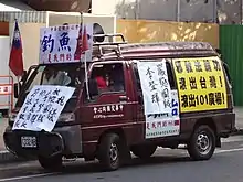 Sound truck belonging to the Patriot Alliance Association, with anti-Falun Gong and anti-Lee Teng-hui slogans, and declaring that the Senkaku (Diaoyu) Islands belong to China.