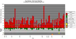 A graph showing Adams' test career bowling statistics and how they have varied over time.