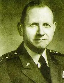 He served in the General Staff of the United States Department of War from 1942 to 1944. He also served as deputy chief of staff to General Albert Coady Wedemeyer in the China Burma India Theater of World War II.[8] He was promoted to brigadier general in 1945.[9] He received the Army Distinguished Service Medal for his service during the war.[10] Despite his numerous staff positions during the war, Caraway never saw combat.[5]