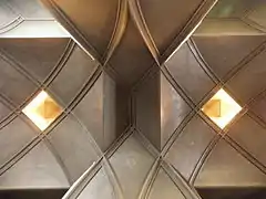 The church structure is based on reinforced cement piers and rib vaults, roofed in two layers of reinforced cement separated by a 4 millimetres (0.16 in) layer of slag.[12] The walls consist of two layers of brick separated by a 7 centimetres (2.8 in) air gap. The church is faced on the outside with orange brick.[13] This was the first religious building to be built from reinforced concrete in France.[14]