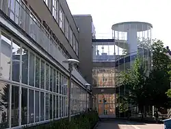 Hedqvist worked as a functionalist. Early in his career he took part in the 1930 Stockholm Housing Exhibition, organized by Gregor Paulsson, but Hedqvist chose not to join other Swedish architects in the "Accept!" movement. Instead he was awarded a good share of Sweden's high-profile state commissions in the 1930s, dams and housing projects and many schools and the Stockholm airport, working mainly in a rationalist style. There's evidence for a penchant for square proportions for window and facade design. The single most noticeable Modernist flourish is the brilliant cylindrical glass staircase for St. Erik's Gymnasium in Stockholm in 1939. Later in his career Hedqvist took credit for some of the tallest buildings in Sweden. [2] [3]