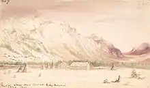 Kane set out on his own on June 17, 1845, travelling along the northern shores of the Lake Huron, moving through Saugeen land.[14][15] After weeks of sketching, he reached Sault Ste. Marie between Lake Superior and Lake Huron in summer 1845. He had intended to travel further west, but John Ballenden, the local Chief Trader for the Hudson's Bay Company stationed at Sault Ste. Marie, told him of the many difficulties and perils of travelling alone through the western territories and advised Kane to attempt such a feat only with the support of the company.[14] After the Hudson's Bay Company had taken over its competitor, the North West Company of Montreal, in 1821, the whole territory west of the Great Lakes until the Pacific Ocean and the Oregon Country was operating under their monopoly, with about a hundred isolated outposts of the company along the major fur trade routes. Kane returned to Toronto for the winter, elaborating his field sketches to oil canvases, and in spring of the next year, he went to the headquarters of the Hudson's Bay Company at Lachine and asked company governor George Simpson for support for his travel plans. Simpson was impressed by Kane's artistic ability, and the letters of support of Ballenden and John Henry Lefroy,[14] but at the same time worried that Kane might not have the stamina needed to travel with the fur brigades of the company. He granted Kane passage on company canoes only as far as Lake Winnipeg, with the promise of full passage if the artist did well until then. Kane would travel HBC routes with the company's explicit aid and blessing for the next two years, and much of his sketching was done at their tradeposts.[16]