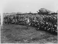 Planning for Operation OVERLORD, the invasion of Normandy, had begun years before and had included the prospect of airborne operations.[22] To control them, Major General Lewis H. Brereton's Ninth Air Force activated the IX Troop Carrier Command in October 1943 under Brigadier General Benjamin F. Giles. However, even before Giles assumed command, it was understood that Williams would be in charge of the operations.[23] He took over on 25 February 1944, bringing with him a number of experienced officers from the Mediterranean. When Giles assumed command, IX Troop Carrier Command consisted of the 50th Troop Carrier Wing, with the 315th and 434th Troop Carrier Groups. The 53rd Troop Carrier Wing arrived from the United States in February followed by the 52nd Troop Carrier Wing from Sicily in March. This brought the IX Troop Carrier Command's strength to three wings with fourteen groups.[24] By the end of May, it had 1,116 crews and 1,207 operational aircraft. In addition, it had 1,118 operational Waco and 301 operational Horsa gliders.[25]