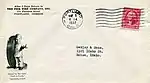 Fisk retailers used Martin's lively figure on their data books,[244] display windows,[245] letterheads, and mailing envelopes (pictured).[246] It showed up in miniature form in The American Boy and Boys' Life magazines[247] (along with hundreds of newspapers)[248] from 1930 to 34. However, advertisements by Fisk and its dealers were fairly rare from 1931 to 36. Most of the dealers (two-thirds!) failed to meet the new financial requirements and thereby lost their franchise in November 1930.[249] This drastic corporate downsizing was done to cut operating costs. It followed three consecutive years of declining sales and mounting debts.[211] The Great Depression had devastated the entire rubber industry through fierce price wars. They were already taking place due to competition from mail-order houses.[250] Martin's figure was never firmly established with a strong promotion campaign, involving significant (yet necessary) expenditures.[251] Fisk defaulted on interest payments to bondholders and entered receivership in January 1931.[252] The restructuring process ended with the naming of a new management team, May 1933. They decided to go back to the original character based on public sentiment in late 1934.[253] This was an unusual regression, as other companies had successfully modernized their own mascots (some multiple times).[251]