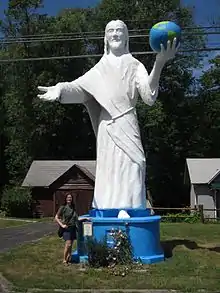 Domke sold the Prehistorical Gardens in 1959, yet continued to create new dinosaur installations at the park. He was also a prolific oil painter, who as a devout Lutheran often painted on religious themes.[9] In 1953 Domke sculpted a large Babe the Blue Ox, which stands next to a Paul Bunyan statue, now located near Ossineke.[10]
