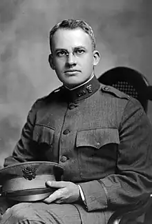 He served in the United States Army during WWI, rising from Private to Second Lieutenant. He enlisted on November 20, 1917 at Fort Slocum. He was discharged on September 12, 1918 in order to accept a commission as an officer. He was also stationed at Madison Barracks ROTC Camp. He served in the Quartermaster Corps at Camp Meigs, Washington, D.C.