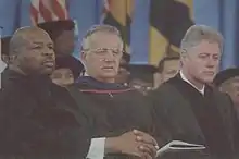 Sarbanes (center) with President Bill Clinton (his left) and Representative Elijah Cummings at the Morgan State University graduation in May 1997