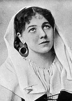 She was soon engaged by Sir Augustus Harris to sing roles at the Royal Opera House, Covent Garden, at the Theatre Royal, Drury Lane, and on tour.[9] Joran's roles over the next four years included Marguerite in Faust, the title role in Carmen, Eurydice in Orfeo, Nedda in Pagliacci, Alice Ford in Falstaff, Anita in La Navarraise, Lady Pamela in Fra Diavolo, and roles in Maritana, Cavalleria rusticana, Die Walküre, Roméo et Juliette, The Lady of Longford, as well as the role of Gertrude in an opera bouffe called Il Maestro di Cappella at the Prince of Wales's Theatre.[5][10] An 1896 review said of her, "Joran is a bewitching Carmen. She sings and acts the part to the life. She is a true artiste."[11] She also sang in Italy during 1895–96[12] and on the concert stage.[1]