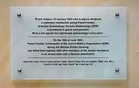 A plaque in memory of Paweł Frenkel at 5A Grzybowska Street in Warsaw