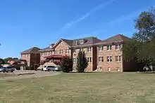 According to McClure, this building was rented out as a private residence by 1973, when the building was listed separately on the NRHP. By the time McClure submitted her thesis (May 2000), it was unoccupied. She described its physical condition as "poor" because the many broken windows, though covered with boards, had admitted wind and rain; there were significant cracks in the floor slab and the stem walls;[lower-alpha 5] the basement walls were no longer watertight and the porte cochere roof was collapsing from rot.[14]