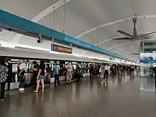 The CCL station design, like all stations on the line, takes into account certain factors such as safety, comfort and convenience, in addition to giving them a stylish modern outlook. The standardised layouts for the stations also make it simpler for commuters to navigate around. Paya Lebar station is also among the few stations with Y-shaped columns supporting the station structure.[25] In addition, there are barrier-free transfers between the EWL and CCL. The CCL station itself, like the other stations on the line, has features such as lifts and wider faregates to make them accessible for wheelchair users.[26]