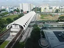 Like most EWL elevated stations on the eastern segment on the line (after Kallang station), Paya Lebar station has the notable feature of the dome-shaped roof, segmented like a caterpillar, over the platform level. The design was an attempt by the MRT Corporation (MRTC) to give the stations on the EWL an "attractive look".[24]